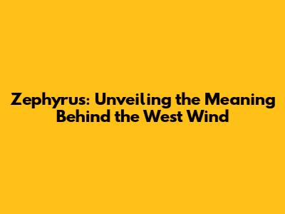 Zephyrus: Unveiling The Meaning Behind The West Wind
